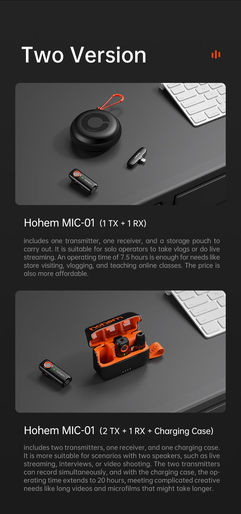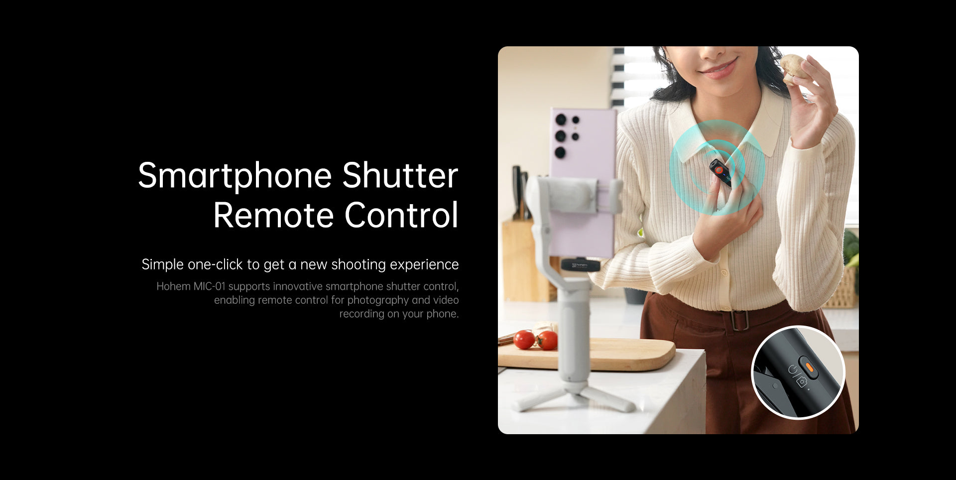 - Hohem MIC-01 supports innovative smartphone shutter control, enabling remote control for photography and video recording on your phone.