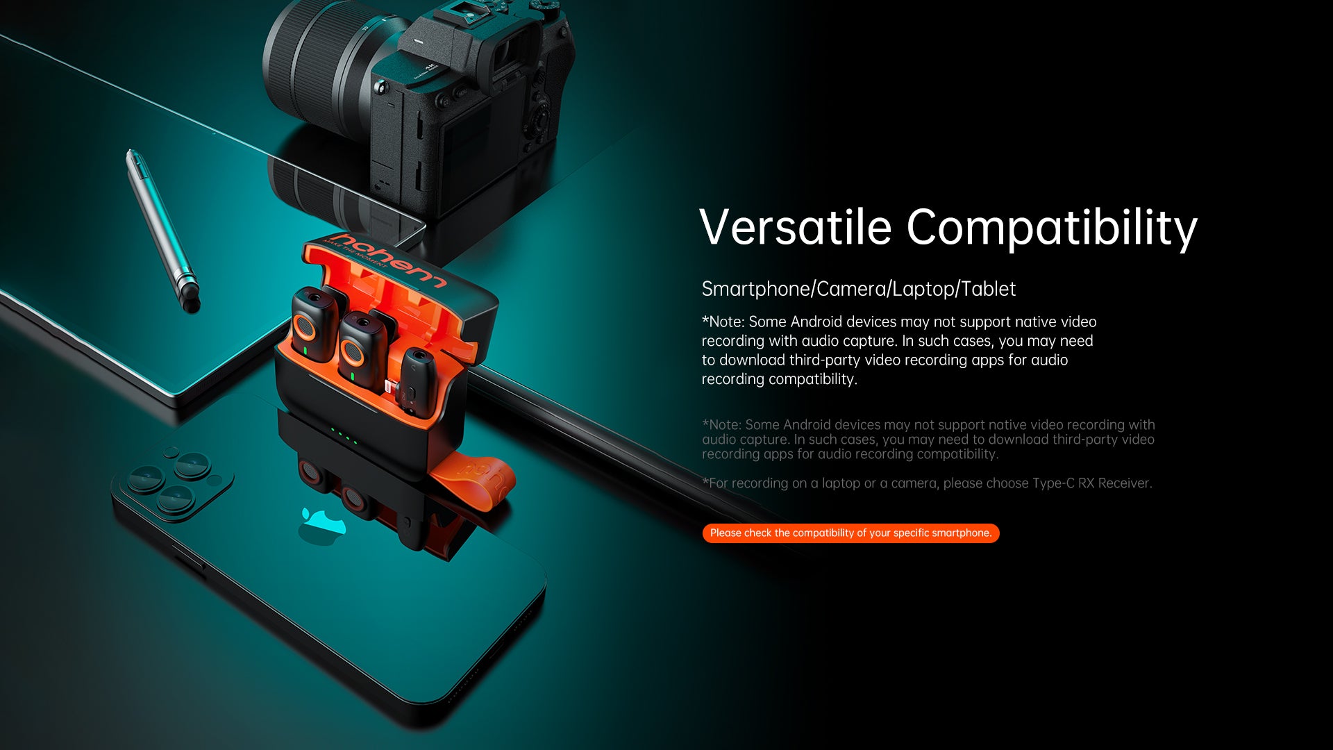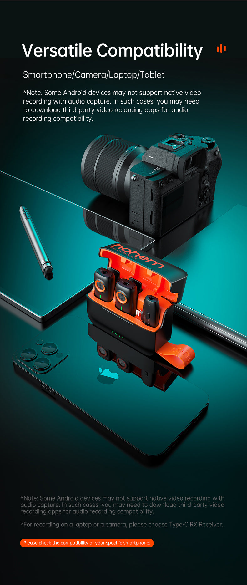 - Seamlessly adapt to diverse creative environments with our microphone's compatibility across smartphones, tablets, and laptops.