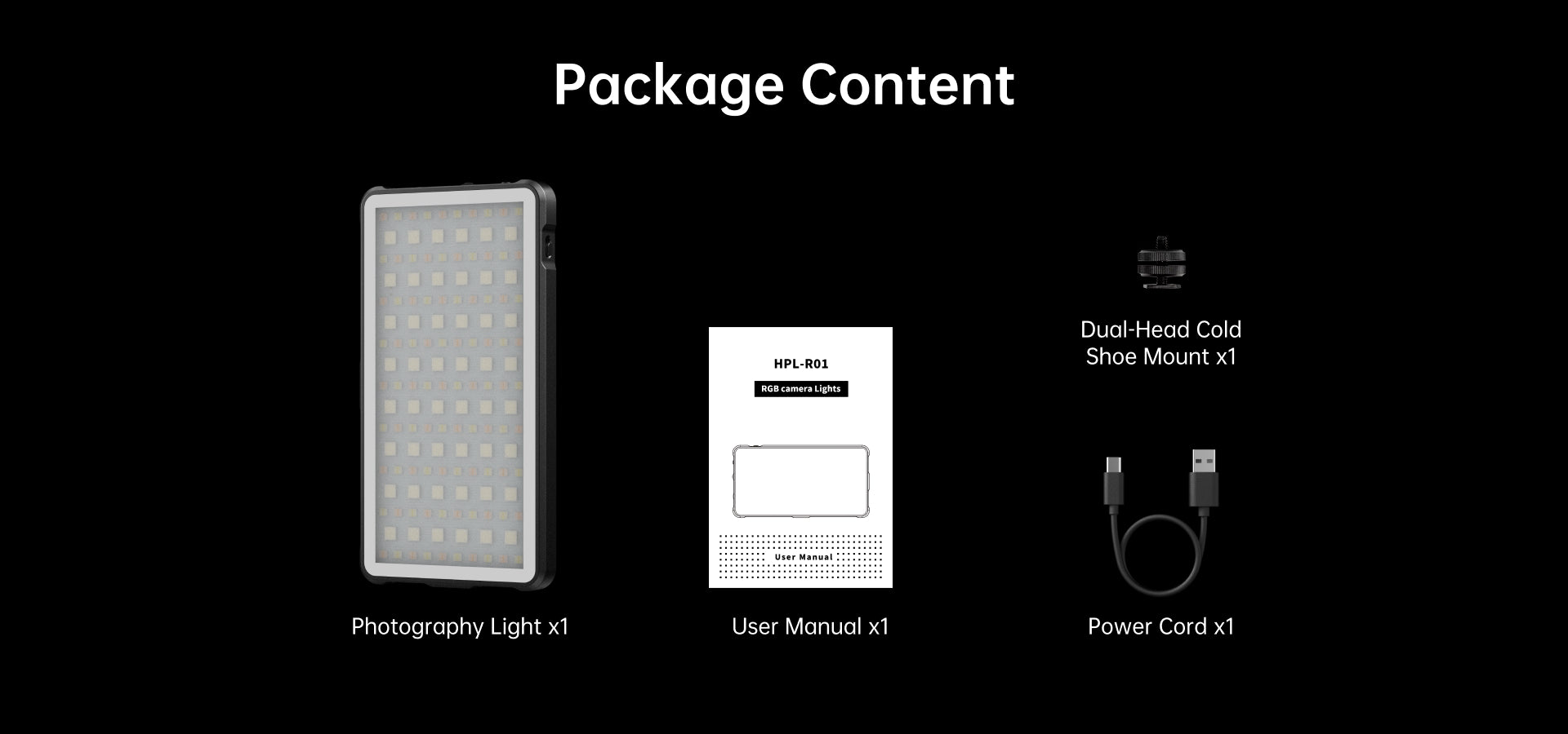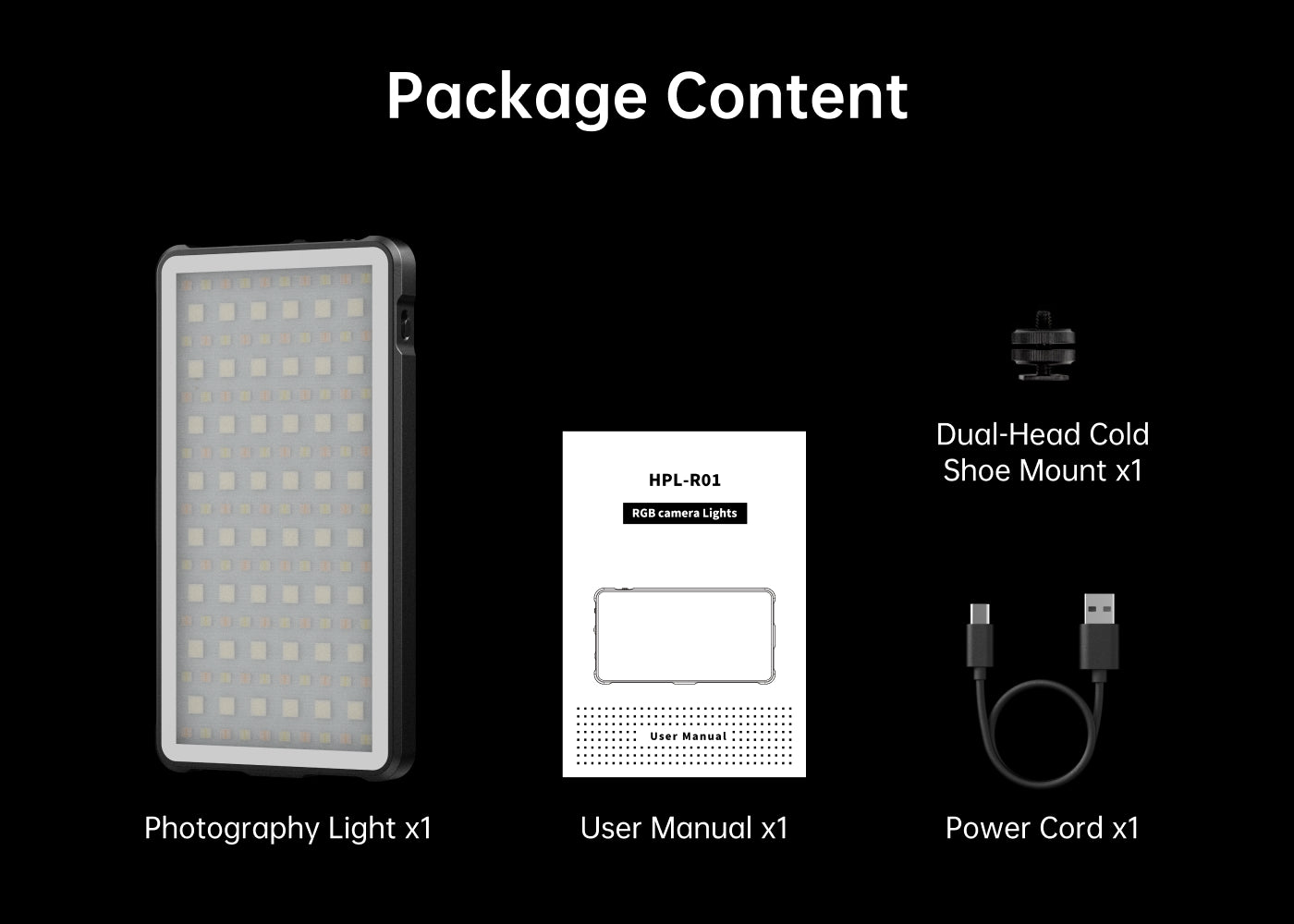 LED pocket light×1, USB Type-C charging cable×1,