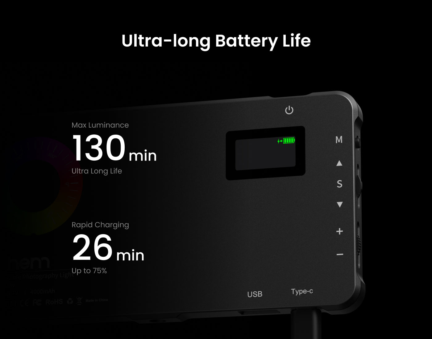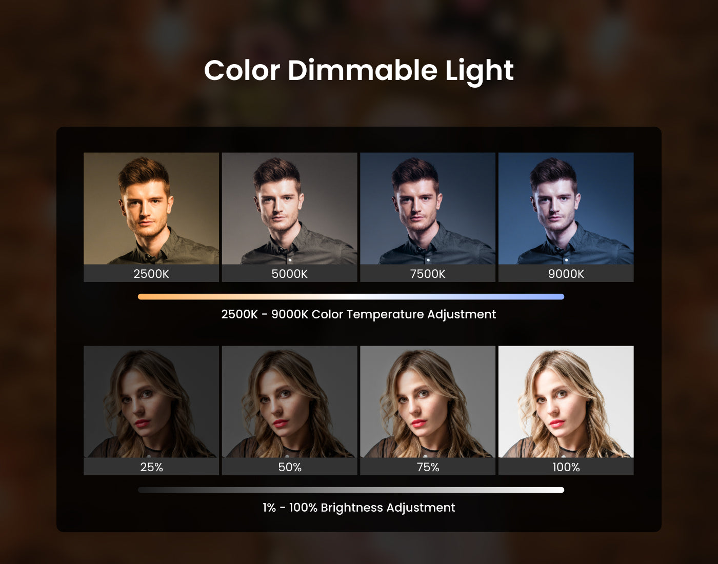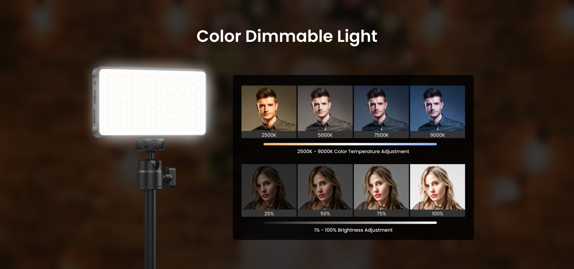 Adjustable Brightness (0-100%): Fine-tune the intensity to suit any shooting environment.