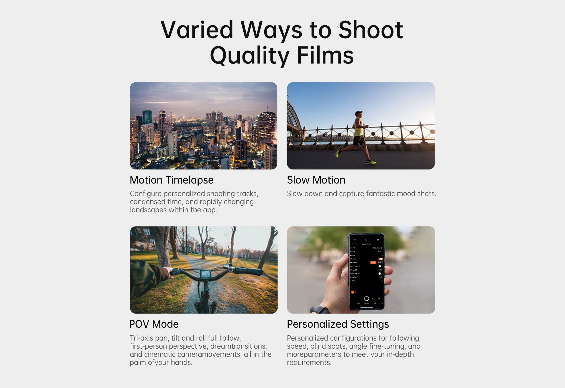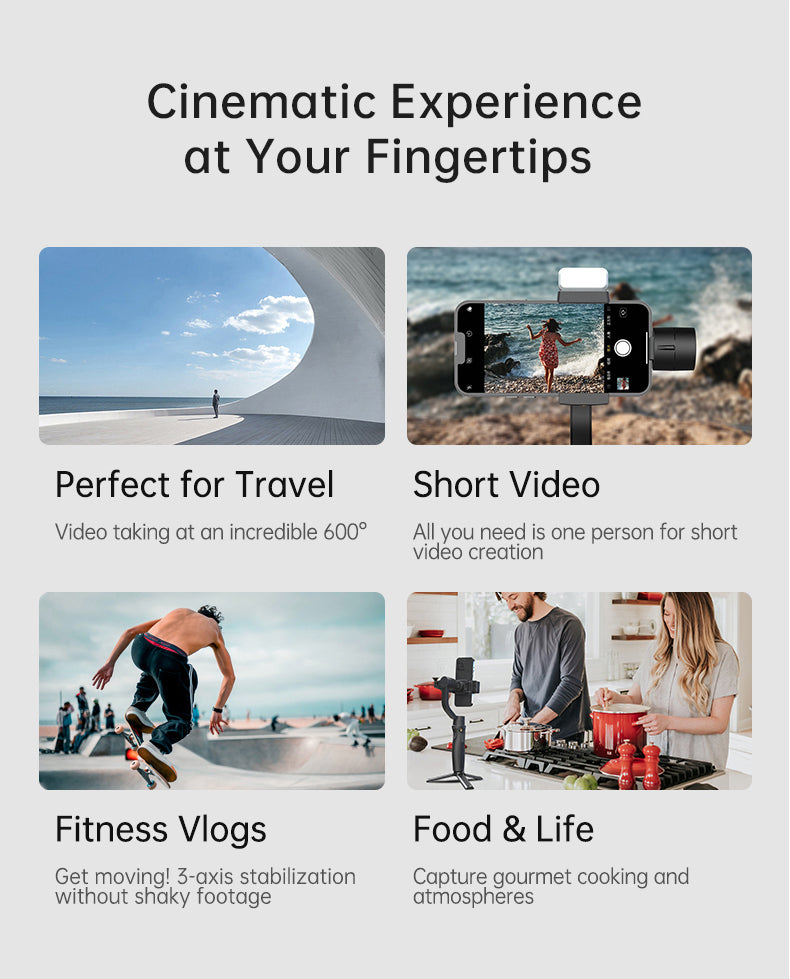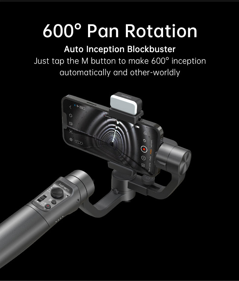 ➤600° Spin Shot: The pan motor can see its 600° rotation to do an incredible spin shooting(inception mode), which makes your films more captivating.