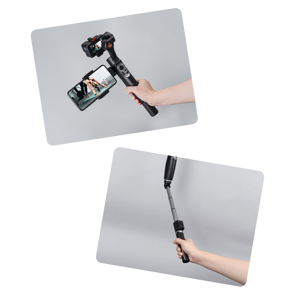 3-axis gimbal, powered by powerful brushless motors and upgraded isteady 5.0 anti-shake