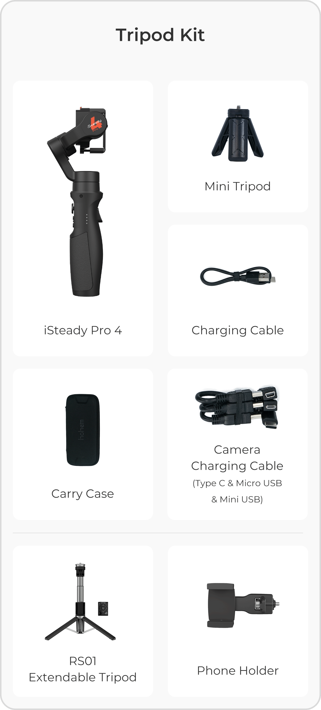 iSteady Pro 4 has 14 hours long battery life, which accompanies you all day to build your dream shot. It also can be used as a power bank that supports action camera charging while shooting.